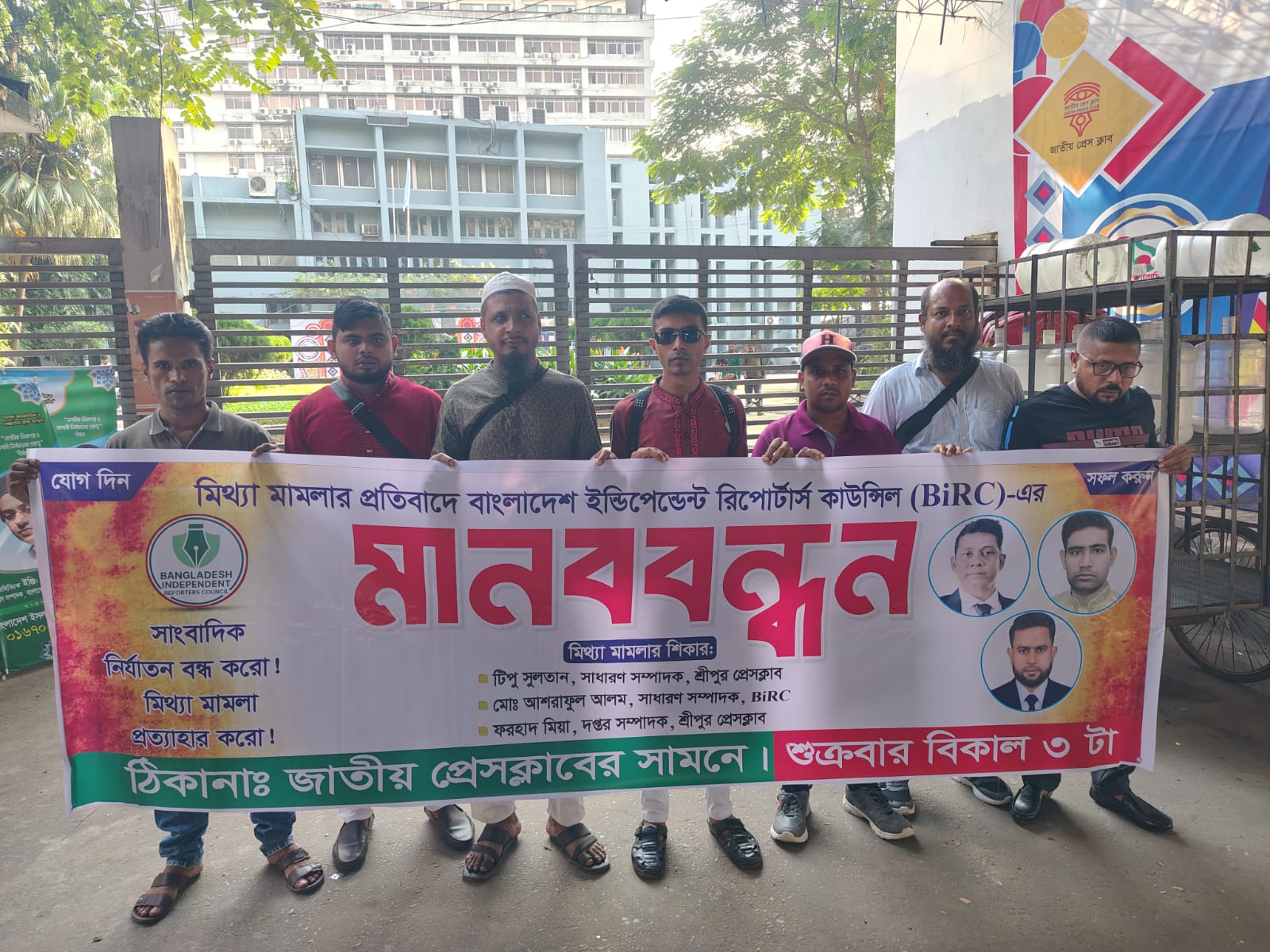 BIRC human chain held in Dhaka to protest false case against three journalists of Sreepur Press Club