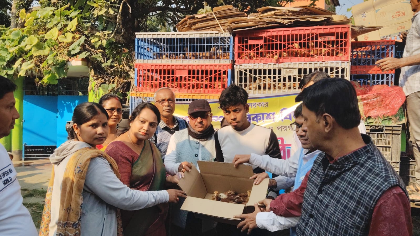 Present at the chicken distribution program on this day were Vice President of Jaynagar Block No. 1 Suhana Parveen Vaidya, officers of the Livestock Development Department of Jaynagar Block No. 1, Officer of the Fisheries and Animal Resources Development Department Bhavesh Rangan Chakraborty, BLDO Debarup Roy, Dr. Subhashish Niyogi, former President and member of the District Council Tapan Kumar Mondal, member of the District Council Rawsonara Bibi. Project Director, Dr. Sameer Patra and President of the Panchayat Samiti along with District and Block level officers of the Livestock Department, Anwar Hossain Laskar Animal Husbandry Worker, Vice President Suhana Parveen Vaidya, various members of the Panchayat Samiti.