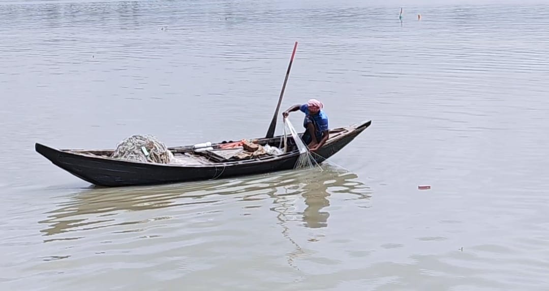 Fishermen are casting nets in the river with the burden of debt on their heads, but they are not seeing the desired Hilsa.