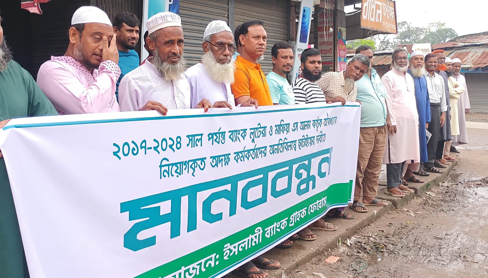 A human chain and protest rally was held in Panchbibi, Joypurhat, in protest of the news of a loss of about 10,000 crore taka due to illegal recruitment and unskilled workers in the country's largest private Islamic bank. The Islami Bank Customer Forum and the Anti-Discrimination Job Seekers Council held this program at Panchbibi Tin Matha intersection on Saturday (October 6) at 10 am.