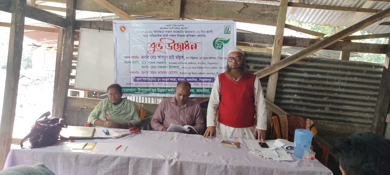 Upazila Livestock Officer Dr. Sudev Sarkar and Md. Nurul Islam Administrator No. 5 Dhawa Union Bhandaria were present as special guests and session moderators. Also Assistant Youth Development Officer and staff. The training will run for 7 days from November 24 to November 30. A total of 30 young men and women aged 18-35 participated in a training session.