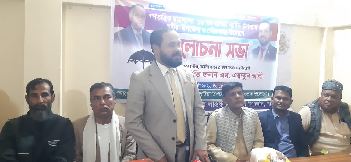 are the ones who still have to understand this attitude. The people are the source of all power." The people of Patia have not been at peace in the last one and a half years. The people of Patia are aware of the people who are doing extortion, extortion, tender fraud, land grabbing, land grabbing in Patia. The general public of Patia will have to prove their position against the extortionist extortionists through the ballot of the National Parliament election on February 12. M.Yakub Ali said the following in the evening (January 9) at the 16th founding anniversary discussion meeting of the Democratic Party of India at the party office in Patia Munsef Bazar.