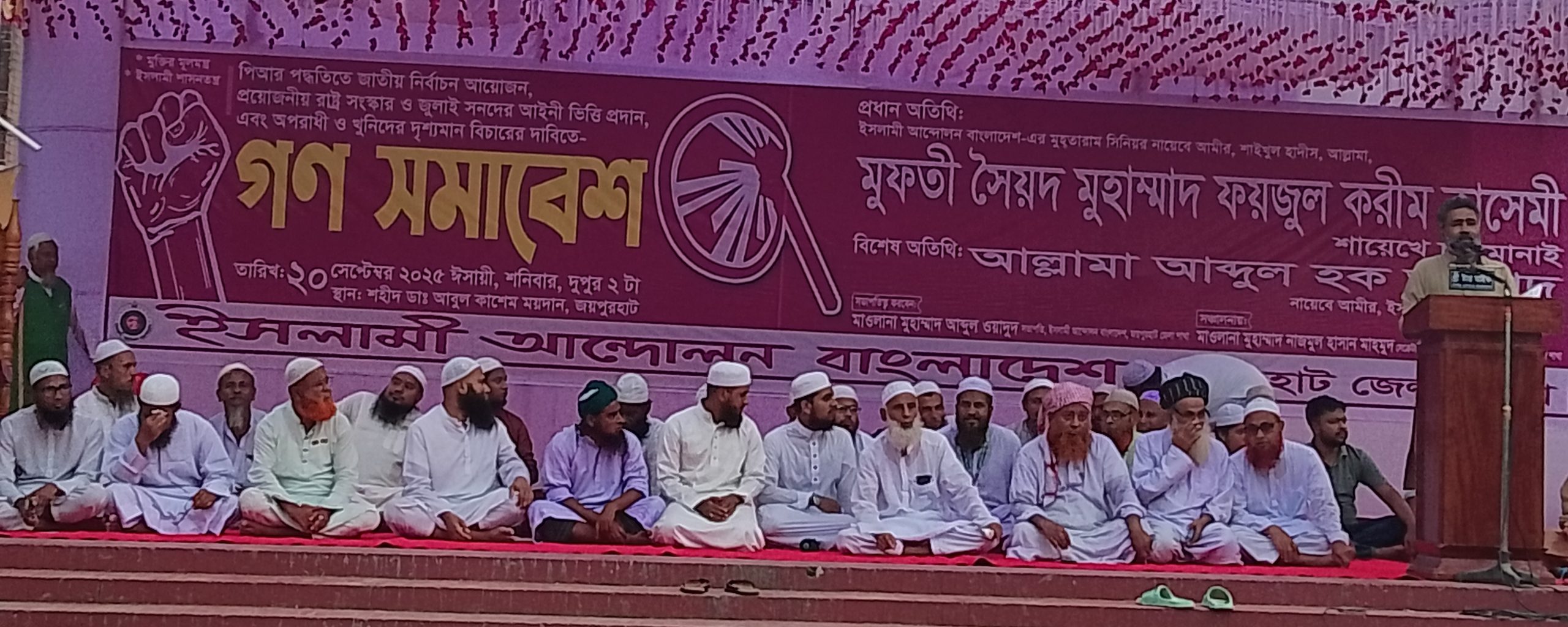 Mufti Syed Muhammad Faizul Karim Qasemi, Shaykh Charmonai were present as the chief guests in the said mass meeting, while Allama Abdul Haque, Nayeb Amir, and leaders of Islami Andolon Bangladesh of Joypurhat district were present as special guests. Journalists were present at that time. The chief guest said that he demanded that the election be held using the PR method. He also said that if the election is held using the PR method, there will be no possibility of vote theft, vote wasting, etc.