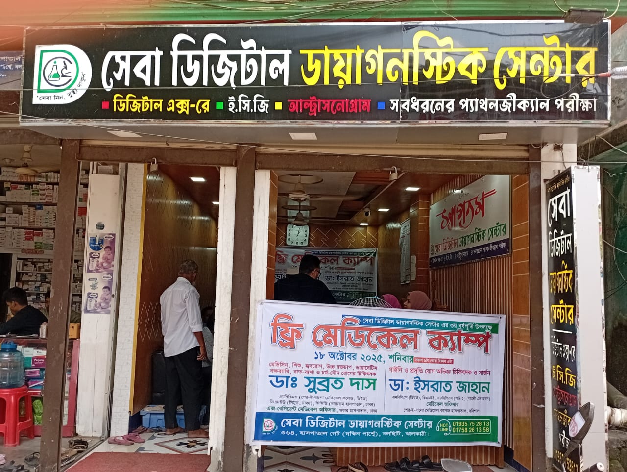 Today, Saturday (October 18), Seba Digital Diagnostic Center, located on Hospital Road, organized a free medical camp from 9 am to 5 pm. During this time, Dr. Subrata Das (MBBS, Sher-e-Bangla Medical College, EX RMO, Square Hospital, Dhaka) and Dr. Israt Jahan (MBBS, Gynaecology and Obstetrics, Sher-e-Bangla Medical College) provided free medical services.