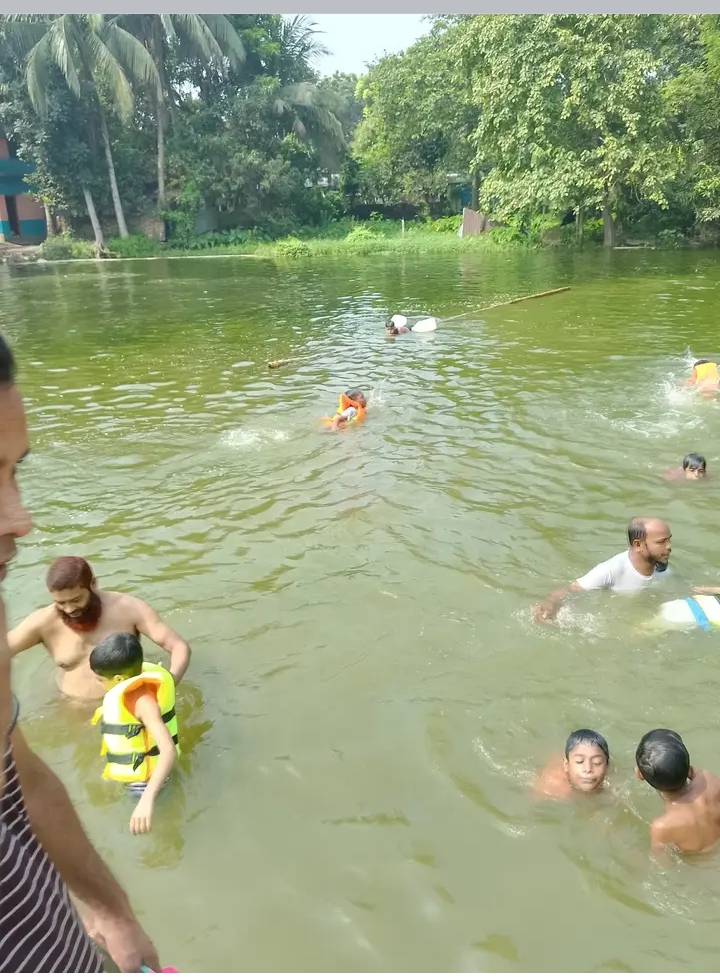 The Boalmari Muslim Media Club has taken an exceptional initiative to ensure safety in water and help children develop physically by teaching them to swim.
