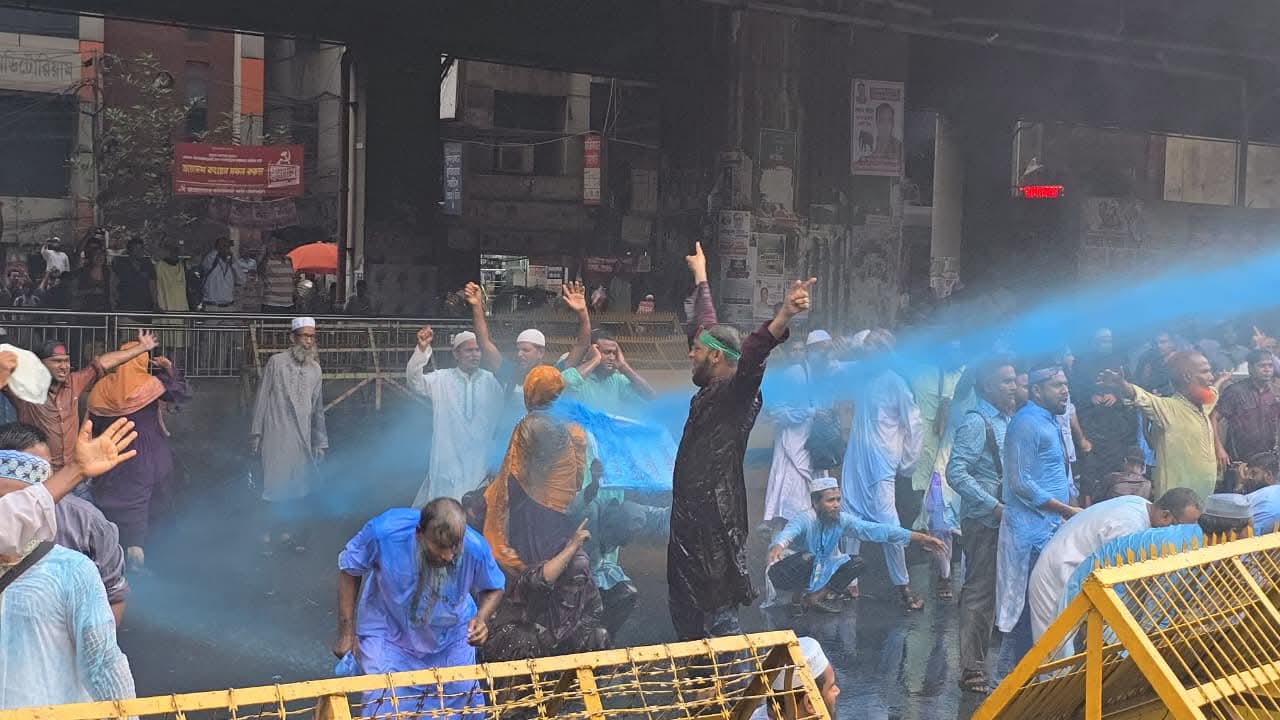 Police fire water cannons and sound grenades at independent Ebtedayee madrasa teachers trying to enter secretariat