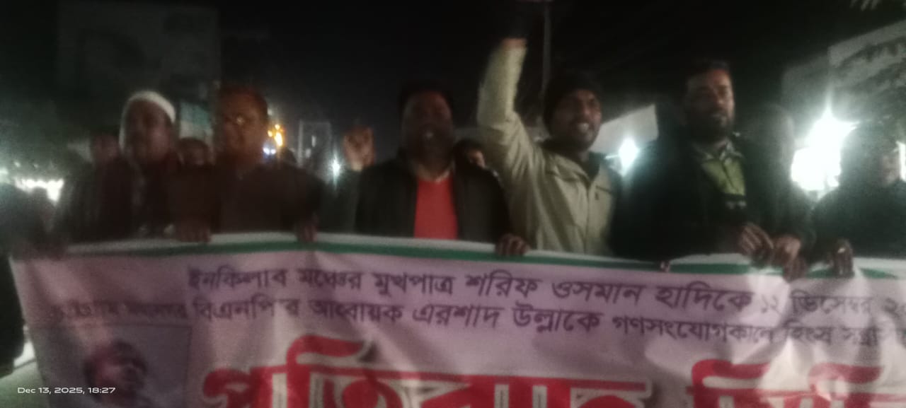A protest procession was held in Ranishankail Upazila of Thakurgaon in protest against the shooting of Inqilab Mancha spokesperson Sharif Osman Hadi and Chittagong Metropolitan BNP convener Ershad Ullah during a public meeting.