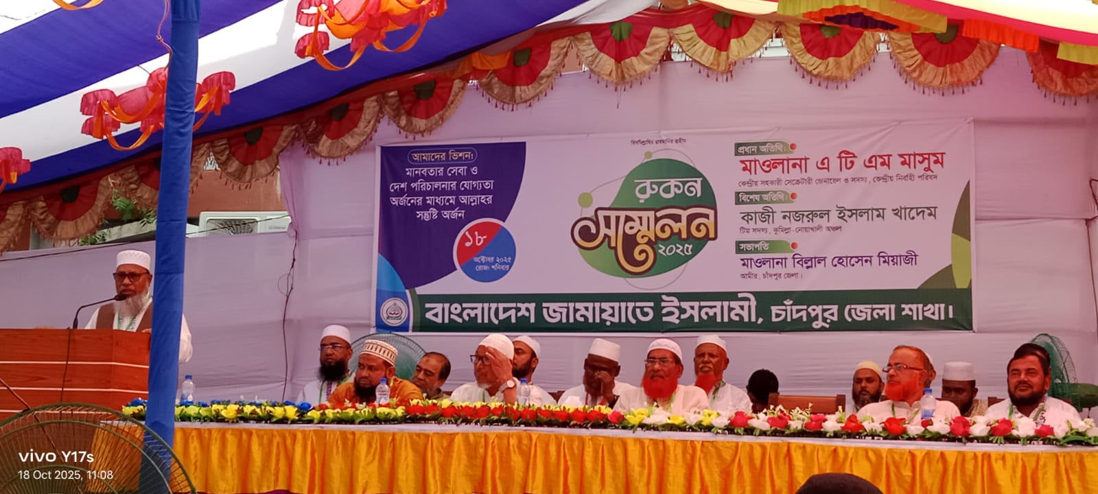 Presided over by Bangladesh Jamaat Islami Chandpur District Ameer Maulana Billal Hossain Miyaji and conducted by District Secretary Advocate Shahjahan Mia, special guests included Bangladesh Jamaat Islami Comilla and Noakhali Area Team Member Kazi Nazrul Islam Khadem, Bangladesh Jamaat-e-Islami Chandpur District Nayeb Ameer Advocate Masudul Islam Bulbul, District Assistant Secretary Professor Abul Hossain, Harunur Rashid Osmani, Master Jahangir Alam, Baitulmal Secretary Mohammad Hossain B.Sc. and many others.