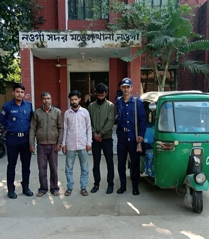 Under the supervision of Naogaon District Superintendent of Police Mr. Mohammad Tariqul Islam, Additional Superintendent of Police Sadar Circle Naogaon, OC Naogaon Police Station, OC DB Naoga, OC Adamdighi, OC DB Bogra District, a joint operation was conducted and members of the suspected robbery gang (1) Md. Rabbi Islam Zisan (30); (2) Mehedi alias Pappu (28) were arrested. Some parts of gold ornaments were recovered from Zisan. They are connected to various robbery activities in the Santahar Railway Junction area.